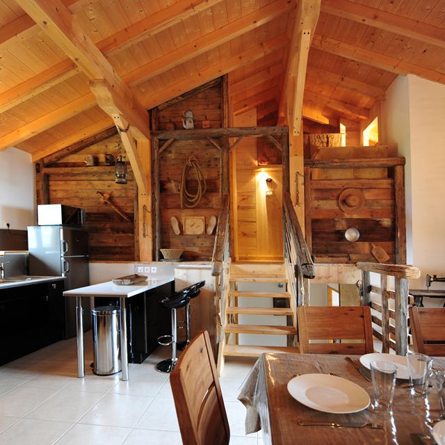 Het chalet is gebouwd in authentieke Savoie-stijl, met veel hout en natuursteen. Houten plafonds, warme materialen en knusse meubels zorgen meteen voor een fijne, huiselijke sfeer. Chalet Christophe & Elodie bestaat uit twee aparte delen: Christophe, een 3-kamerappartement, en Elodie, een ruim 7-kamerappartement. Beide accommodaties bieden volop ruimte en zijn afzonderlijk of samen te boeken, perfect voor families of vriendengroepen.