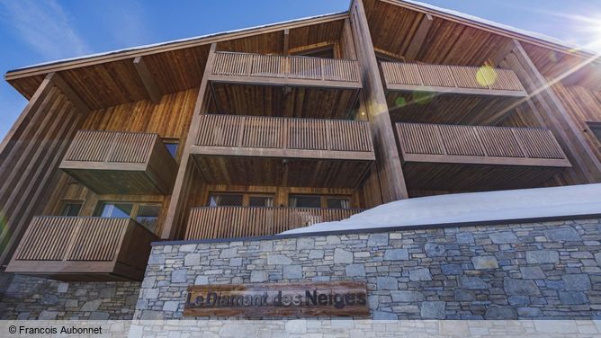 Het landstypische aparthotel Résidence Le Diamant des Neiges ligt op ca. 100 m van het centrum van La Plagne 1800. De dichtstbijzijnde afdaling voor alpine skiërs en snowboarders ligt direct voor de huisdeur.