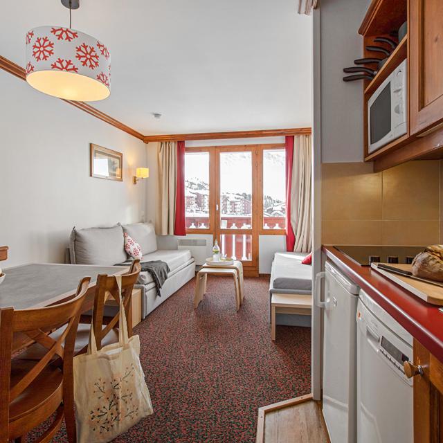 Résidence Le Mont Soleil is een mooi appartementencomplex, gebouwd in traditionele chaletstijl. Het is prachtig gelegen, op een hoogte van 2050 meter temidden van de pistes in Plagne Soleil.