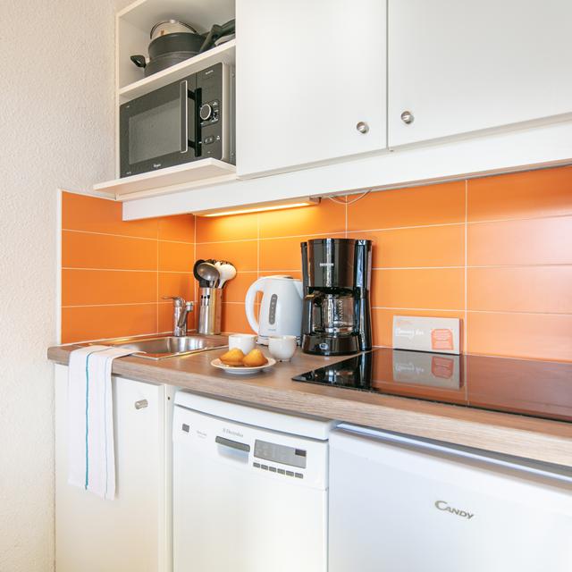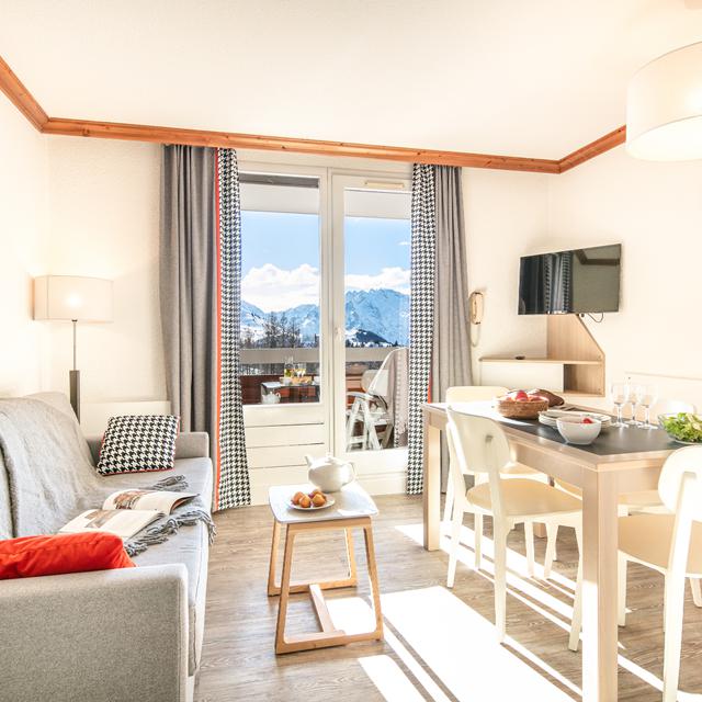 De appartementen zijn modern en sfeervol ingericht, met gebruik van mooi donker hout en vrolijke oranje accenten. Na een dag uitleven op de pistes is het heerlijk om je nog even onder te dompelen in het verwarmde buitenzwembad. Hiervandaan heb je ook nog een schitterend uitzicht op de besneeuwde bergtoppen om je heen. ‘A pool with a view’ dus!